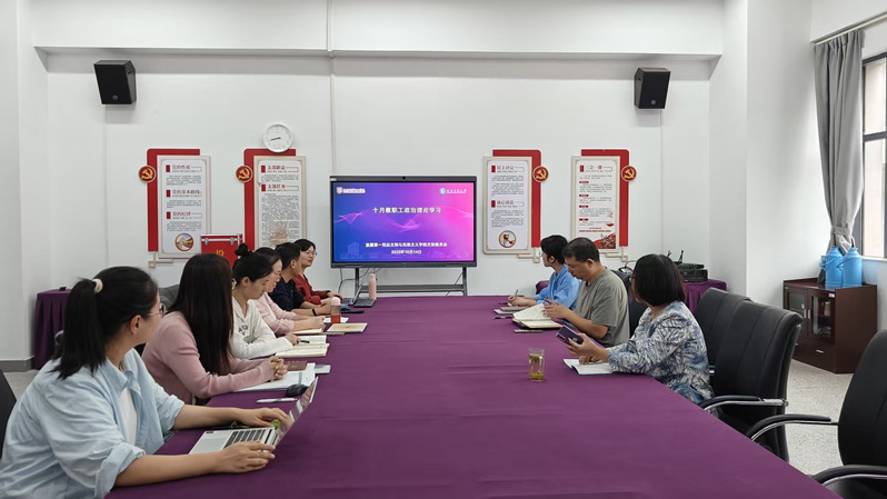 根据学校党委的统一部署,10月14日下午,直属第一党总支部马克思主义学院支部委员会在溧水校区敏行楼303会议室开展十月教职工政治理论学习,孙洁星老师对习近平给全国特岗教师代表的回信和《中华人民共和国法治宣传教育法》进行了系统讲解,支部党员参与了学习。