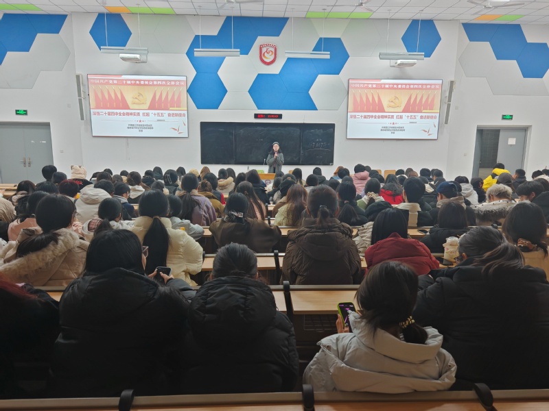 活动伊始,张蓉老师首先围绕党的二十届四中全会精神作了理论宣讲。她以深悟党的二十届四中全会精神实质,扛起“十五五”奋进新使命为主题,从党的二十届四中全会精神内涵、习近平总书记为何如此重视“十五五”规划编制、“十四五”我们交出了怎样的答卷、党的二十届四中全会究竟擘画了怎样的未来蓝图、贯彻落实党的二十届四中全会精神的实践路径等五个方面进行了系统阐释,为在场同学深化对全会精神的理解、增强理论素养奠定了扎实基础。