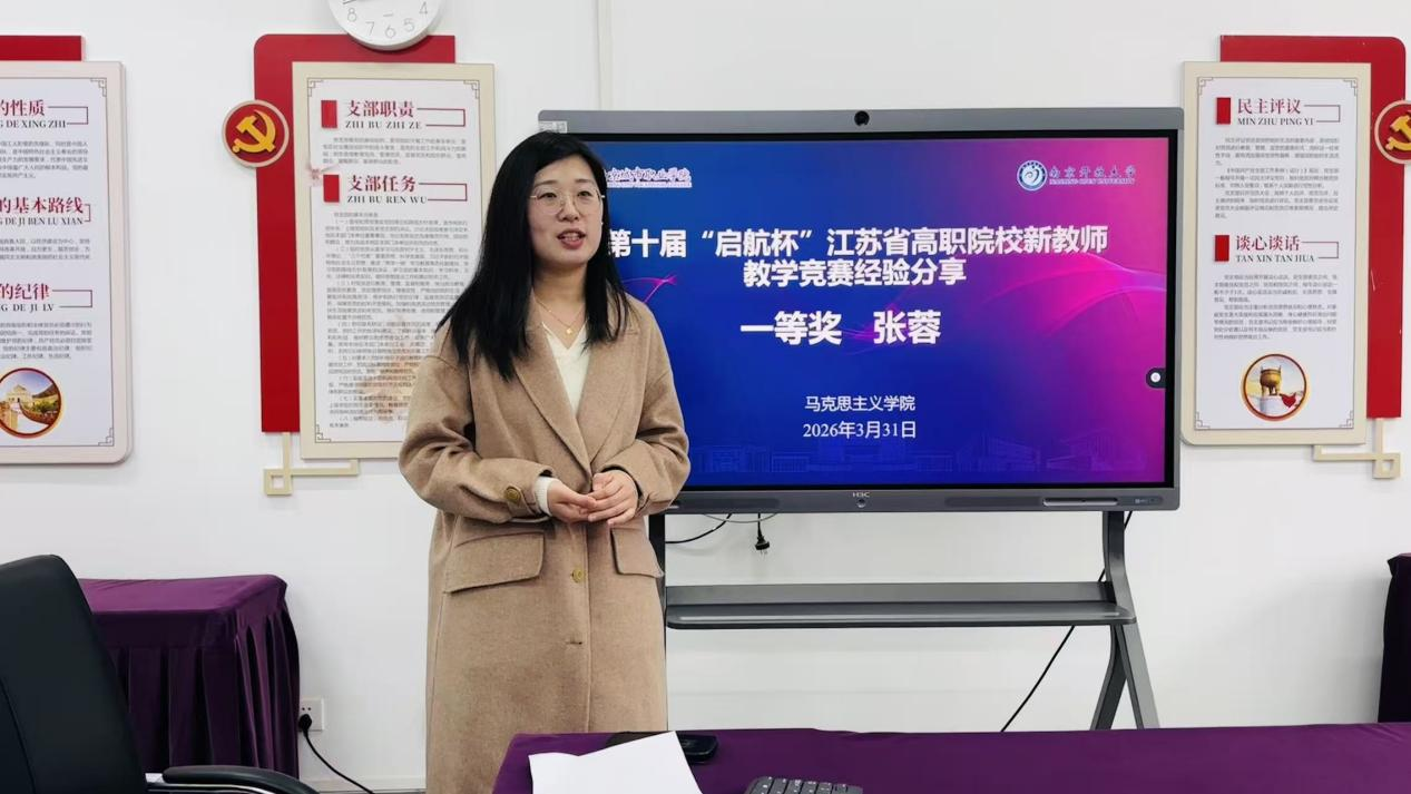 近日,第十届“启航杯”江苏省高职院校新教师教学竞赛落幕,马克思主义学院张蓉老师领衔的教学团队经历层层选拔摘得桂冠,荣获一等奖(第一名)。为充分发挥竞赛示范引领作用,3月31日,学院组织开展了教学竞赛交流研讨会,会议由副院长李欢欢主持,全体教师参会。