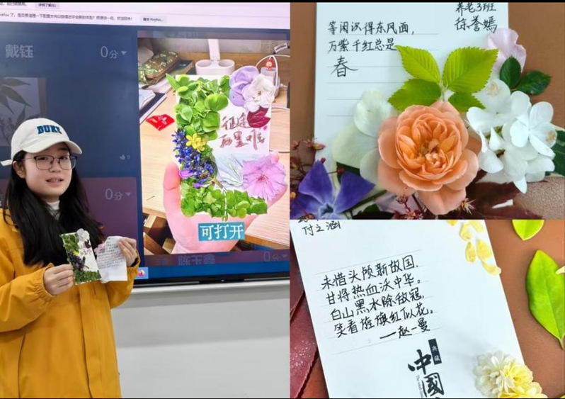 多措笃行学党史,以学促行践使命。为进一步深化党史学习教育成果,让党史知识入脑入心,系列活动回归课堂,开展丰富多彩的课堂实践活动。活动现场,教师们精心设计了党史知识竞答、师生听歌识曲、VR沉浸式实践教学、学生红色艺术作品展示等实践环节,兼顾实践活动的知识性与趣味性。同学们在竞答环节踊跃举手、积极抢答;听歌识曲活动精彩纷呈,师生同台唱响经典红歌;在VR沉浸式实践教学中,借助VR虚拟设备,使学生身临其境地走进革命旧址,直观感受革命先辈浴血奋战的峥嵘历程;学生分享环节里,同学们语言表达流畅得体,创作作品精致出彩,生动展现了良好学风与昂扬向上的青春风采。