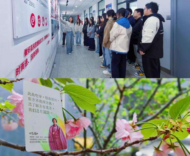 校园调采新风,躬身实践强担当。走出红色李巷,师生们返回校园开展调研采风活动。此次采风以“参观校园文化长廊,创设校园思政特色元素”为核心目标,聚焦思政教育与校园生活的深度融合。同学们以小组为单位,通过实地调研、手工创作、影像记录等多种形式开展实践活动。学生在思政教师的带领下参观马克思主义学院文化长廊,近距离重温党的创新理论发展脉络与实践成果。同学们精心设计制作思政教育明信片,将革命精神、家国情怀、时代使命等思政内涵融入方寸设计之中;同时用镜头定格美好,拍摄思政元素与校园生活相融的摄影作品,让思政理念在校园场景中变得可视化、具象化。